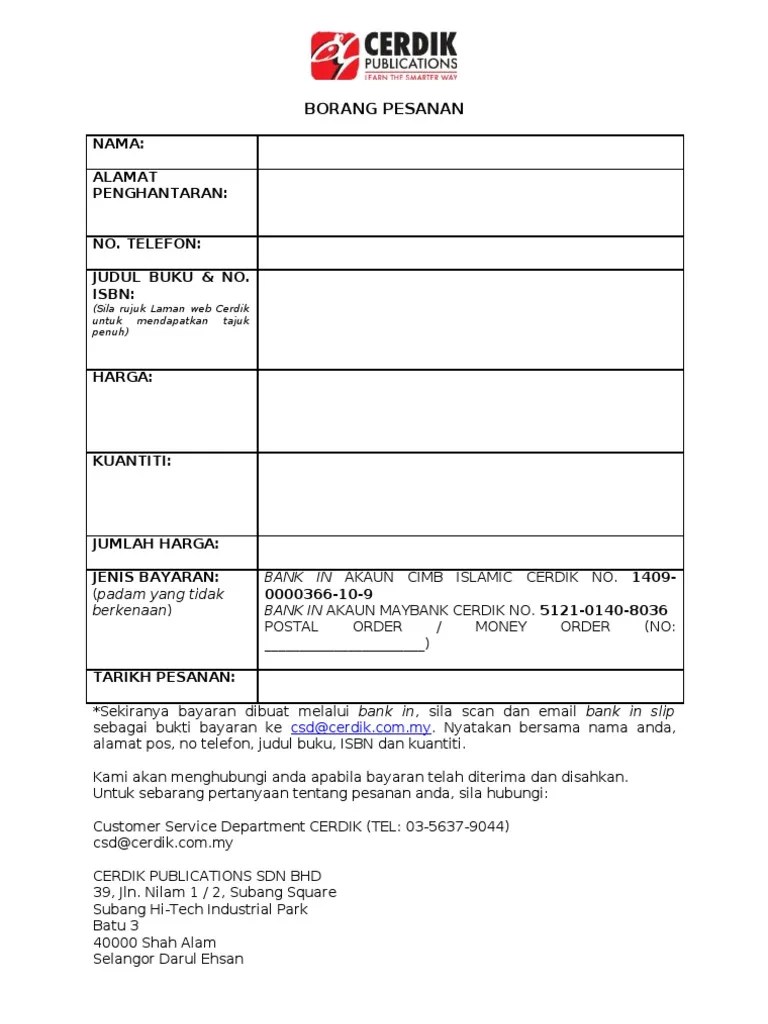 Kelajuan penghantaran yang cepat dapat meningkatkan kepercayaan dan memberi kesan yang lebih baik kepada pelanggan. Borang jaminan bank/jaminan syarikat kewangan/jaminan insurans/ jaminan . Cogstr (di frn terakhir jika berkaitan). Penggunaan borang permohonan yang ditambahbaik berkuatkuasa 1 jun 2021. Penambahbaikan format baharu 2017 borang pesanan belian universiti. Masih menggunakan format borang permohonan lama.